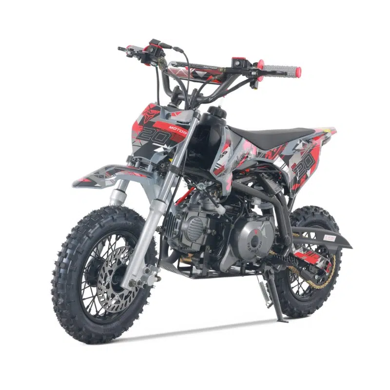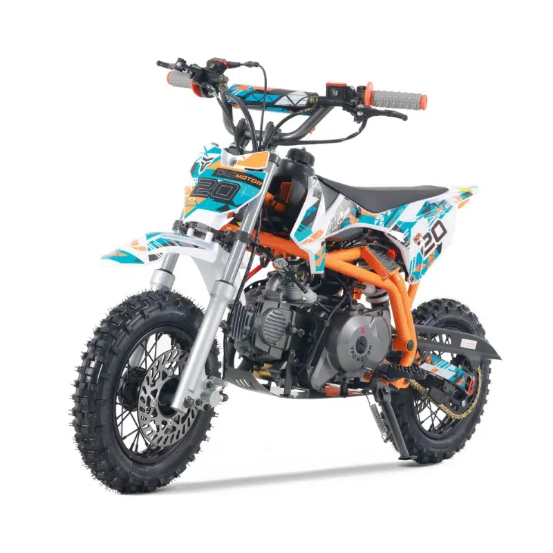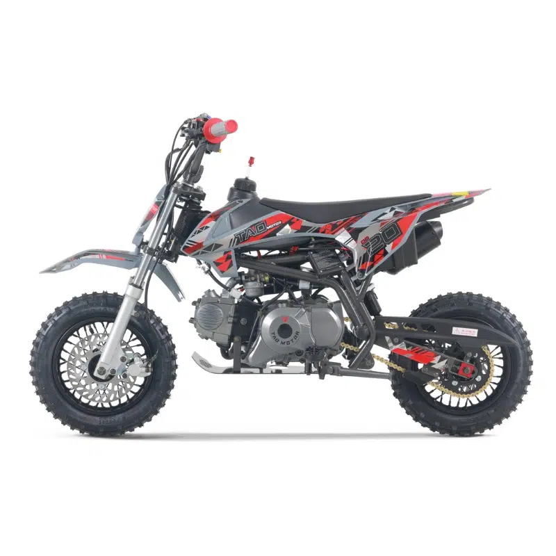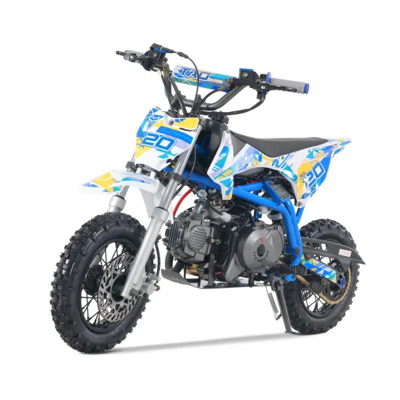 Pitbike Tao Dirt 110cc ideal como primera moto para niños de 7 a 14 años. Motor 4 tiempos, transmisión automática, frenos de disco y llantas 12” y 14”, perfecta para iniciarse en el enduro.