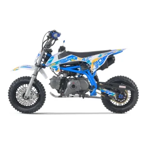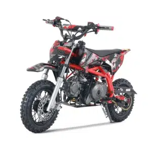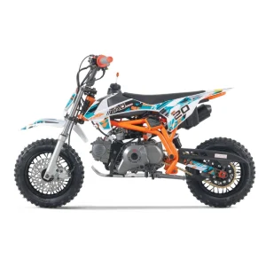 Perfecta como primera moto para niños de 7 a 14 años, este modelo es popular por ser del tamaño de una moto pequeña con un motor de 4 tiempos de 110cc, usa sólo bencina de 93 octanos, las llantas de 12 y 14 pulgadas le permiten verse casi del mismo tamaño que una moto mediana siendo más económica, es excelente para recorrer terrenos abruptos, sin duda una excelente opción para empezar en el mundo del enduro.